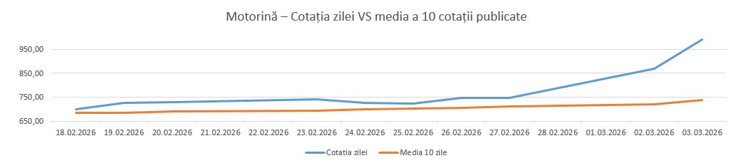 Tabelul de mai jos prezintă evoluția stocurilor de Motorină Standard în depozitele operatorilor din țară.